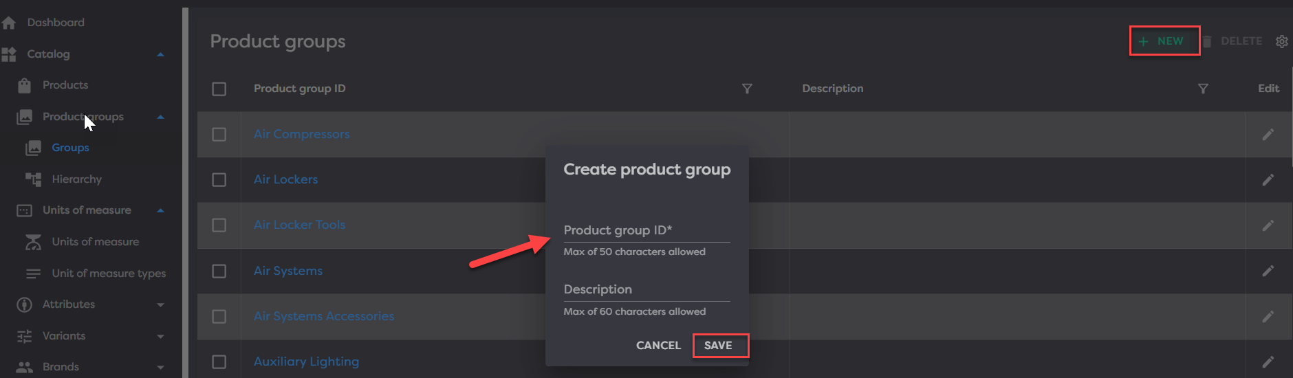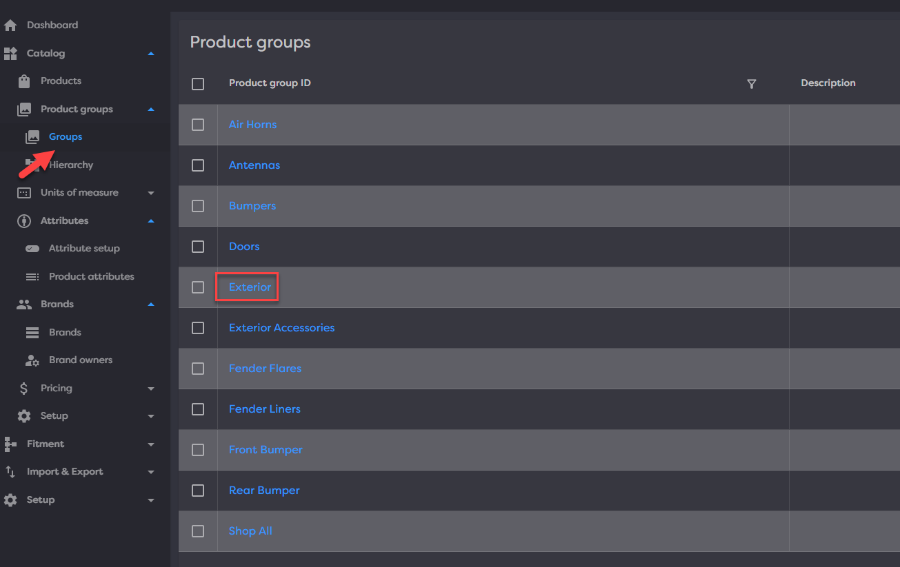 Navigate to groups by going to Catalog > Product groups > Groups > click New in the top right to get started.