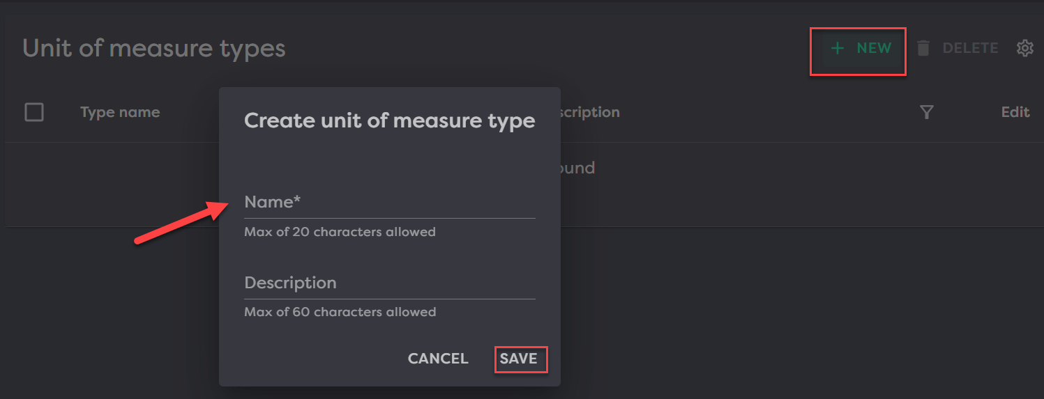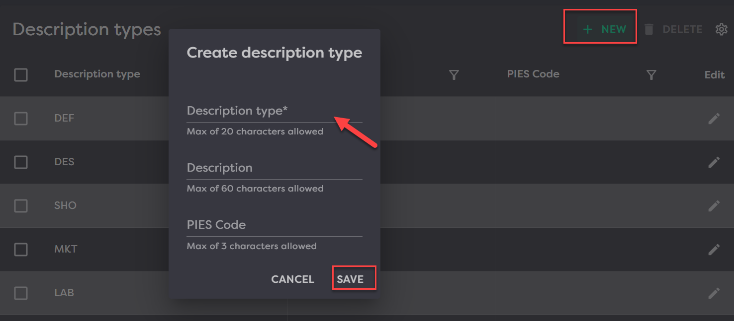 To add a description, click New in the top right, fill in the required fields and then click Save.