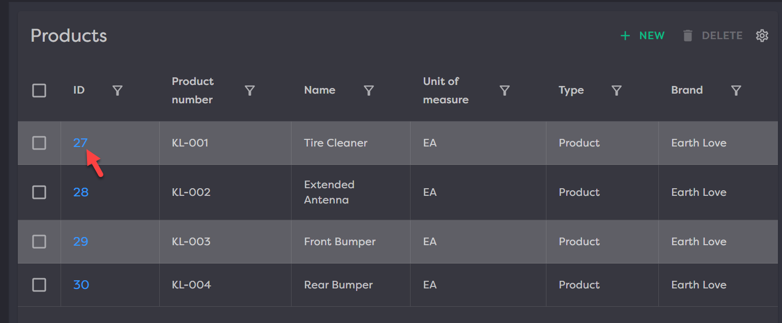 To edit product details, click the hyperlinked ID number to go into the product to add additional information, attributes, pricing, etc.